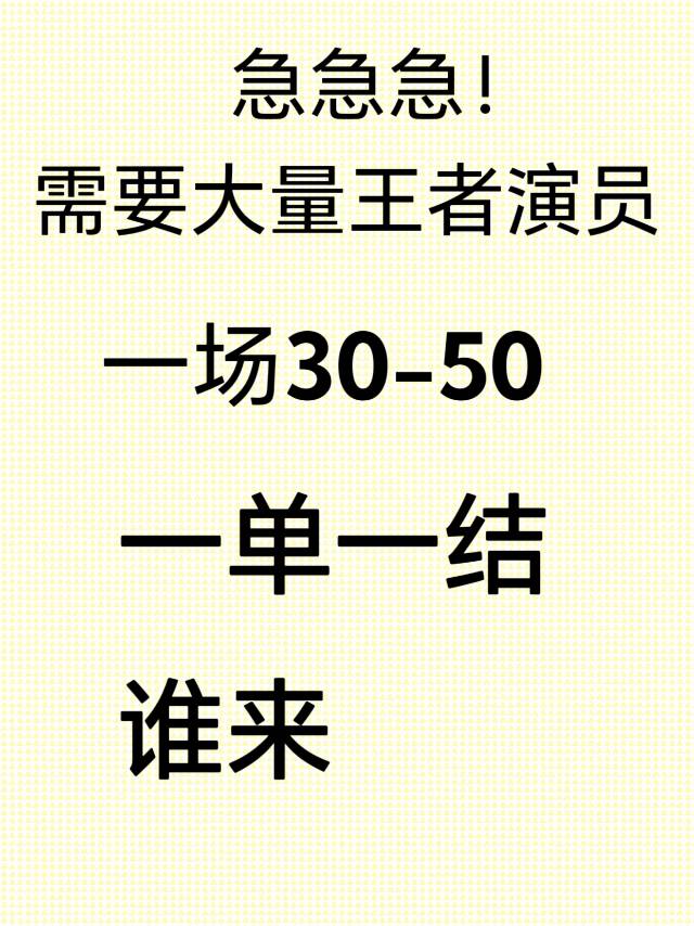 招大量王者演员一场10-30元,一单一结