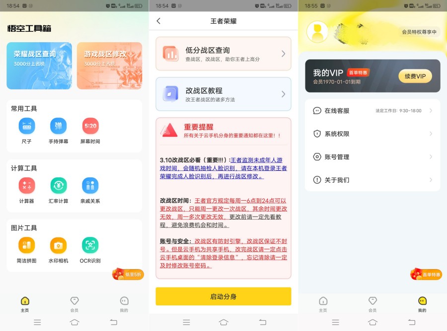 这是一款多功能的工具类应用,因为体积十分小巧而功能却又非常的完善强大。 【应用包名】:com.nams.wk.box 【应用版本】:1.1.8.01 【应用大小】:44.0MB 【适用平台】:安卓 【版本说明】:修改版 悟空工具箱提供了从日常、图片、查询、游戏、计算、等多方面的功能,操作简单,即点即用,避免您下载超多应用的难题,且应用体积轻巧,界面简洁。 【使用方法】:手机号登录即是会员