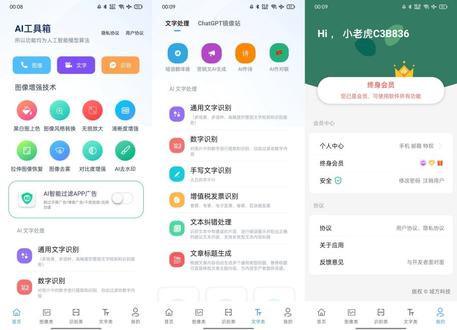 文字类工具:暗语翻译器、营销文AI生成、AI作诗、AI作对联、通用文字识别、数字识别、手写文字识别、增值税发票识别……
